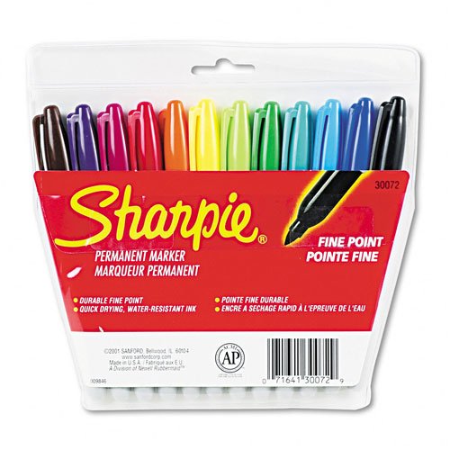 Mark Whatever You Want with the original Sharpie. Permanent on most hard-to-mark surfaces so you can personalize or decorate a variety of things. 1.0mm tip for fine, bold marking. Pocket clip. Fast drying, fade and water-resistant ink. Global Product Type: Markers-Permanent; Marker Type: Permanent; Assortment: Aqua; Berry; Black; Blue; Brown; Green; Lime; Orange; Purple; Red; Turquoise; Yellow; Color(s): Assorted.: